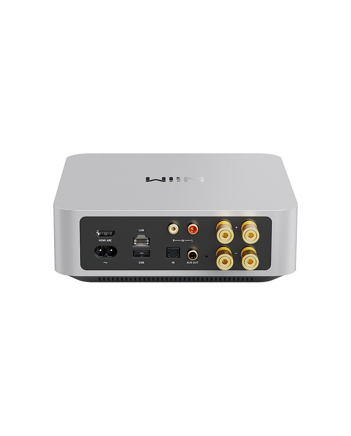 Amplificatore Streamer DAC di rete, Trasmissione della musica tramite DLNA, WiFi, Chromecast, AirPlay 2 e Bluetooth 5.1 sia in trasmissione che in ricezione, Potenza 2x60W su 8ohm e 2x120W su 4ohm in classe D, Compatibile con Alexa, Siri e Google, Microfono interno, Servizi di streamer più diffusi integrati, come Spotify, Tidal, Qobuz, Amazon Music, etc., Roon Ready, App WiiM Home sia per iOS che Android, DAC integrato audiophile ESS Sabre ES9018K2M (32bit/768KHz), CPU Quadcore A53, Multiroom, Ingresso analogico RCA, Ingresso digitale ottico, Presa Ethernet, Riproduzione Gapless, Telecomando, Pulsanti touch sul frontale, Finitura Silver