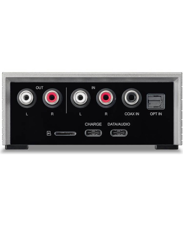 La parte posteriore del cabinet è dotata di ingresso e uscita RCA, nonché ingresso USB, ottico e coassiale, ci sono poi una porta USB-C per la ricarica e una scheda microSD che supporta fino a 1 TB di spazio di archiviazione aggiuntivo, mentre nella parte anteriore invece, trovano posto una serie di uscite per cuffie, sia sbilanciate da 6.3 mm e 3.5 mm che bilanciate da 4.4 mm e 2.5 mm. Il volume può essere poi controllato con una ruota piuttosto grande con un clic tattile sul lato destro dell'ACRO CA1000.