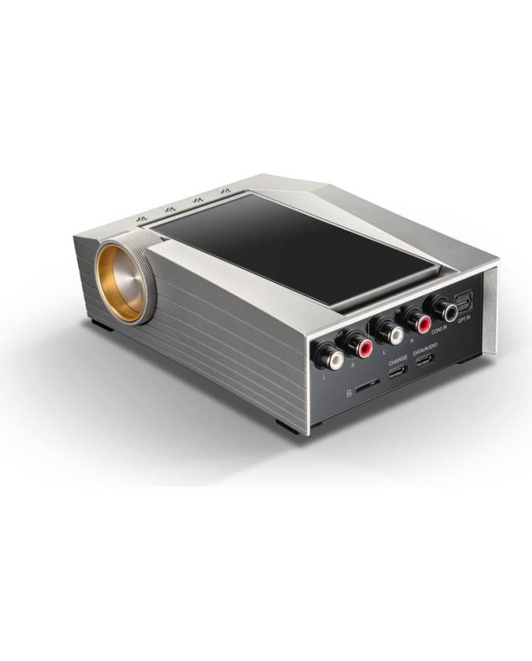 Amplificatore per cuffie portatile e combo DAC, Alloggiamento interamente in alluminio, Manopola del volume laterale per regolazioni fini del volume, Touchscreen da 4.1" per la selezione della musica e la regolazione delle impostazioni, Bluetooth 5.0 con aptX HD e LDAC per flussi wireless ad alta risoluzione, Wi-Fi dual-band, CPU quad-core per un funzionamento rapido ed efficiente, Memoria interna da 256 GB (espandibile a 1 TB con scheda microSD), Quattro chip DAC ESS Sabre ES9068AS a 32 bit con tecnologie Quad DAC e Hyperstream II, Frequenze di campionamento supportate fino a 32 bit/384 kHz, DSD fino a DSD512 (22,4 MHz), Formati supportati: WAV, FLAC, WMA, MP3, OGG, APE, AAC, ALAC, AIFF, DFF, DSF, MQA