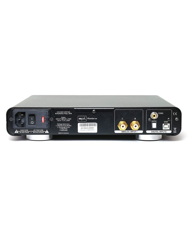 L'azienda tedesca SPL Electronics (Sound Performance Laboratory) molto nota e altamente riconosciuta nell'ambito professionale ha presentato una serie di prodotti maggiormente rivolti all'uso 'home' e tra questi l'amplificatore per cuffie con DAC incorporato, Phonitor SE-DAC. Questo anche se l'entry level è un prodotto di alta qualità non solo dal punto di vista costruttivo, realizzato in Germania ma anche dal suono convincente che si rivolge agli appassionati più maturi che sanno cosa cercare in un prodotto di classe. Costruito su un telaio in alluminio tutto sembra essere al posto giusto con levette e manopole eticchetate in modo molto ben visibile e che danno un gran senso di solidità, come la grande manopola per la regolazione del volume motorizzata Alps RK27 "Big Blue" e tornita dal pieno di alluminio. Sotto questo bello e ordinato cabinet trova posto la famosa tecnologia VOLTAiR ad alta tensione, fiore all'occhiello e motivo di vanto della SPL, la stessa utilizzata nei modelli più costosi Phonitor X e Phonitor XE. Questa utilizza una tensione che viene aumentata a 120 V nel circuito dell'amplificatore e gli stadi analogici Voltair, secondo SPL, mostrano parametri che sono oltre i limiti di misurazione, ad esempio il sistema Audio Precision. L'uscita analogica del Phonitor SE è in grado di erogare fino a 5 watt per canale con un'impedenza delle cuffie di 250 ohm, ottimo per qualsiasi cuffia, anche per i modelli elettrostatici più assetati di corrente. Un'altra tecnologia utilizzata in Phonitor molto innovativa, che lo distingue dagli altri amplificatori, è il sistema di alimentazione incrociata chiamato "Phonitor Matrix". Questa permette di liberarsi dello stereo ipertrofico delle “cuffie” e di ascoltare la musica attraverso le cuffie con la sensazione che il suono provenga dagli altoparlanti rivolti verso l'ascoltatore. L'uscita cuffia presente sul frontale è sbilanciata ed è caratterizzata da un jack da 6,35 mm. A livello di entrate il Phonitor SE-DAC ha jack di ingresso RCA stereo sbilanciati per sorgenti analogiche e tre ingressi digitali: S/PIDF coassiale, ottico o più un ingresso USB tipo B. Questa versione è infatti dotata di un chip di decodifica D/A AKM DAC768xs che utilizza l'acclamato AKM AK4490 Velvet Soundchip DAC premium, che supporta 32 bit con frequenze di campionamento fino a 768kHz, esso accetta segnali PCM e Direct Stream Digital fino a 11,2 MHz (DSD256). Grazie a questo esso riesce a ricrerare un'immagine sonora coerente e finemente disegnata con un elevato grado di dinamica e riserva di potenza sufficienti a pilotare ogni cuffia e a farla esprimere nel miglior modo possibile per come è stata progettata, facendo si che ogni ascolto sia sempre una nuova esperienza di ascolto.