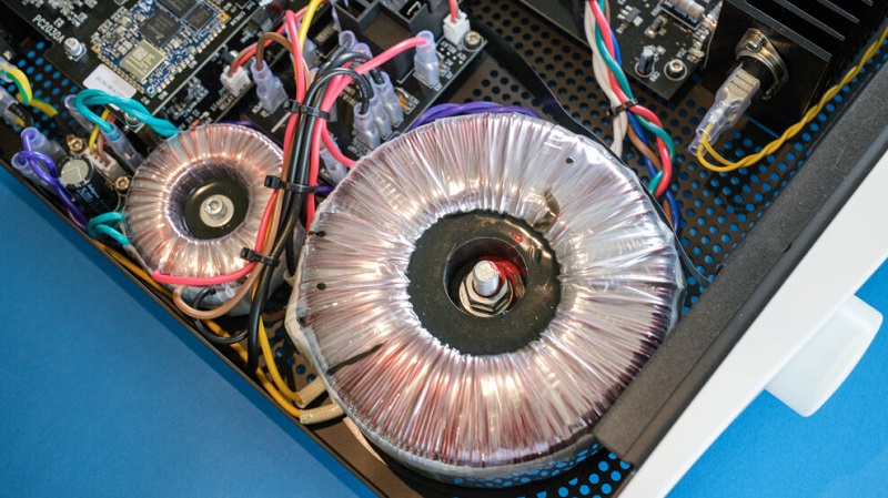 Il grande trasformatore toroidale a bassissimo rumore e condensatori ad alta velocità, forniscono poi corrente istantanea e una riserva dinamica in grado di gestire diffusori di alta gamma, inclusi carichi ostici con impedenza minima, con il basso che risulta fermo, teso e privo di code, la gamma media ricca di informazioni e la sezione alta ariosa e rifinita senza esasperazioni.