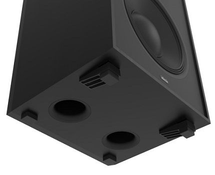 Un doppio sistema bass-reflex, con due porte rivolte verso il pavimento, consente poi all'utente di regolare la risposta dei bassi, chiudendone una o entrambe tramite i tappi inclusi, il tutto completato da un crossover a tre vie calibrato con precisione, mentre infine i terminali consentono collegamenti in bi-wiring o bi-amping.