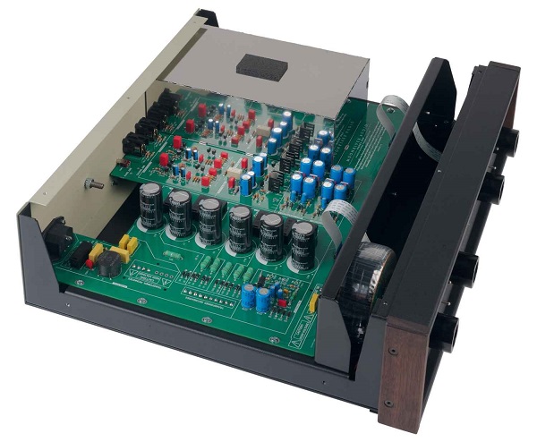 L'interno è invece caratterizzato da un circuito molto puro con un layout ordinato, mentre la costruzione è composta da materiali solidi e per il preamplificatore sono stati utilizzati solo componenti discreti. L'intera struttura è costruita in dual mono e oltre al grande trasformatore toroidale ci sono cinque alimentatori separati in questo amplificatore che portano tutto nella giusta direzione.