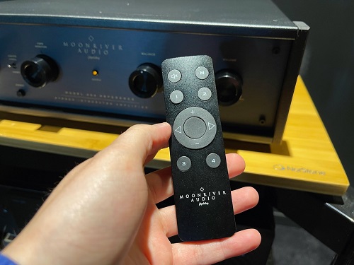Una bella manopola del volume Blue Alps e una comoda manopola del bilanciamento forniscono infine molta facilità d'uso. Il Moonriver Audio 404 è anche dotato di un piccolo ma grazioso telecomando che si adatta bene alla mano, che permette una regolazione del volume abbastanza fine.