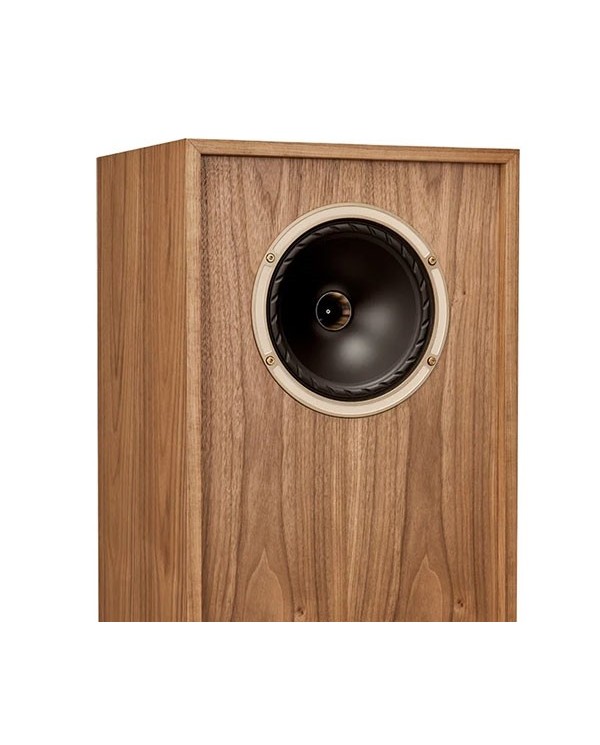 Fyne Audio Vintage Classic Gold VIII SP, Diffusore da pavimento a 2 vie di alta gamma che unisce un design rétro a una tecnologia audio avanzata, Equipaggiato con il rinomato driver IsoFlare a sorgente puntiforme, Mid-Woofer cono da 200 mm (8") in fibra multipla, Tweeter a compressione con cupola in magnesio da 25 mm e sistema magnetico in ferrite, Sistema BassTrax Tractrix diffuser per una migliore gestione dei bassi, Regolazioni dell'alta frequenza e della presenza, Realizzato artigianalmente in compensato di betulla ad alta densità con una pregiata finitura in vero legno di noce e rinforzi interni estensivi, Finitura Walnut