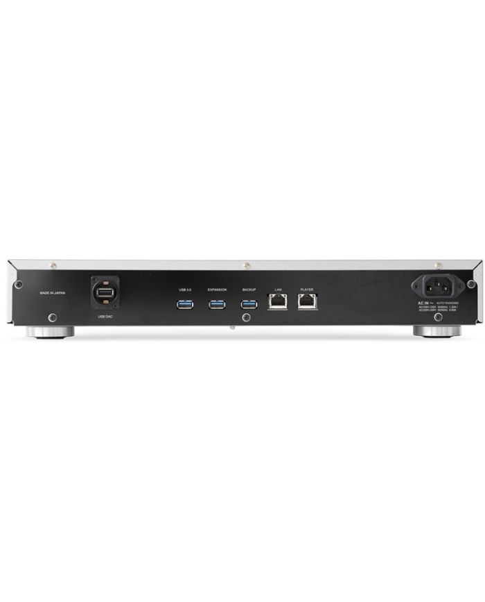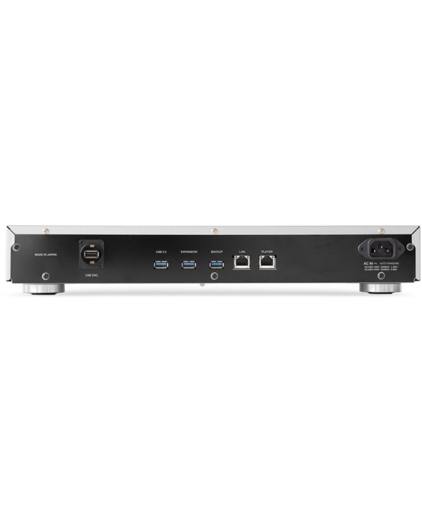Server musicale con HDD da 6 TB ideale per conservare la propria collezione musicale, Può riprodurre musica tramite l’uscita DAC USB dedicata che supporta i formati DSF, DFF, FLAC, WAV, ALAC, AIFF e AAC con frequenze di campionamento da 16 a 32 bit fino a 384 kHz per il PCM e da 1 bit fino a 11.3 MHz per il DSD, 2 Porte Ethernet dedicate di cui una Player per la connessione diretta a uno streamer di rete e l'altra LAN per la connessione alla rete domestica per una ridurre il rumore e una trasmissione dati ad alta integrità, Roon Ready per gestire la libreria musicale e accedere ai servizi di streaming come TIDAL e Qobuz, Telaio rinforzato per ridurre le vibrazioni, Display OLED, Ingresso di alimentazione IEC con filtro antirumore, Ingresso clock esterno a 10 MHz commutabile, Finiura Silver