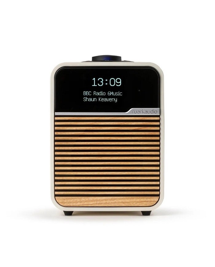 Radio con funzionalità DAB, DAB+ e FM che insieme a un ricevitore Bluetooth integrato di alta qualità consente anche di riprodurre musica in streaming wireless da smartphone o computer, Suono di prima classe con equalizzatore adattivo, Elegante cabinet in polimero sagomato con trattamento acustico, Griglia in legno a doghe realizzata a mano, Display OLED ad alto contrasto con oscuramento automatico, Sistema di controllo intuitivo Rotodial, Doppi allarmi completi e facili da usare, Amplificatore lineare con driver Ruark NaturalSound+, Porta USB per la riproduzione e la ricarica con supporto ai formati FLAC e WAV, Telecomando opzionale, Finitura laccato panna con griglia frontale in frassino